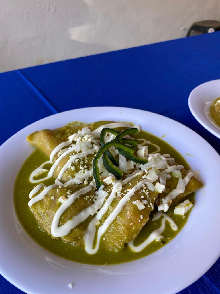 Salsa roja a base de tomate, con el toque secreto de la casa incluye huevo al gusto, chilaquiles rellenos de chicharrón prensado, papa con carne, queso, pollo surtido. Carne de res. Tortillas fritas.