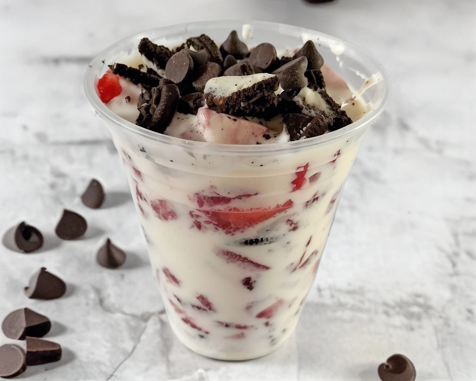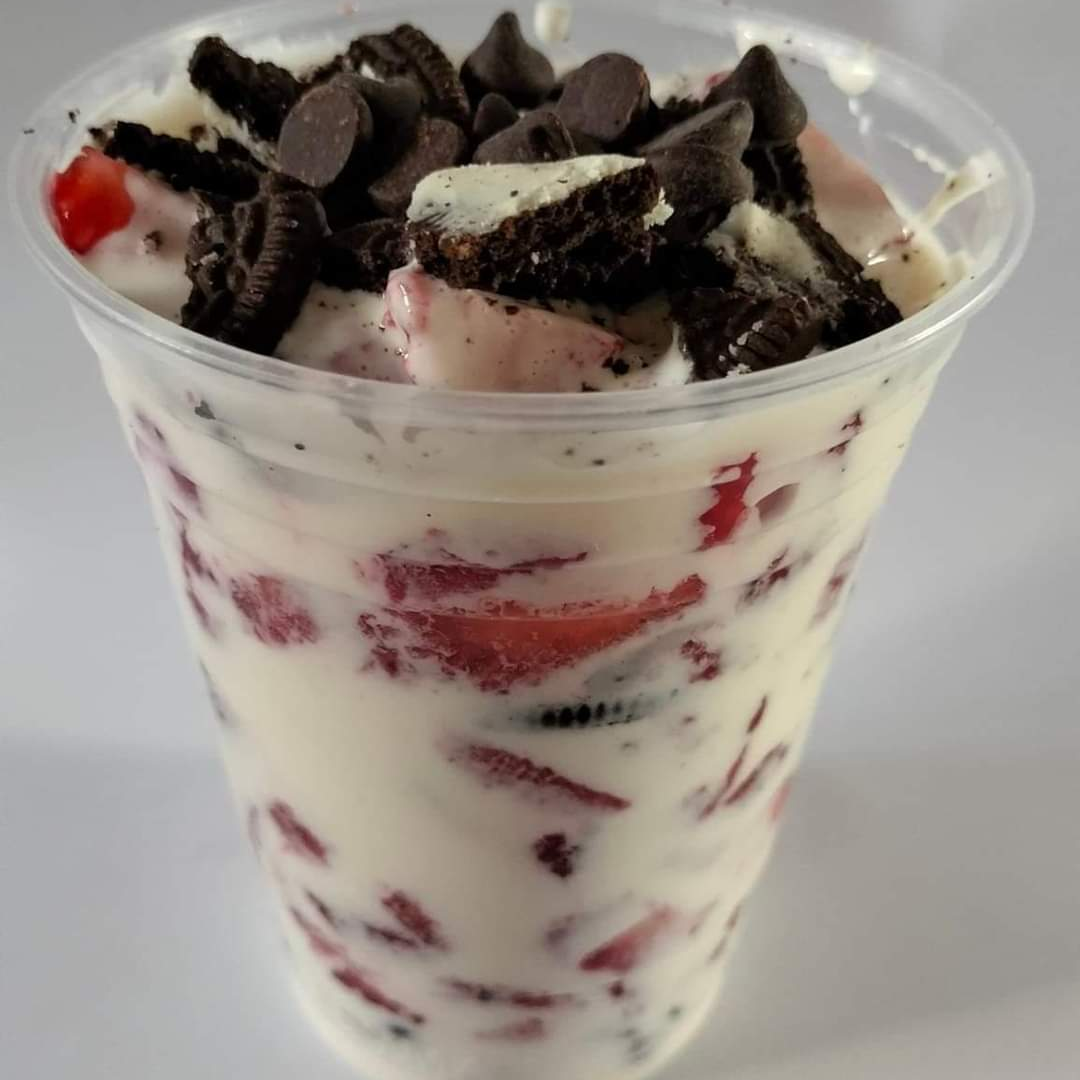 Fresas frescas (no congeladas) con una crema deliciosa preparada en un vaso de 20 Oz. NO LLEVA TOPPINGS (PIDELOS).