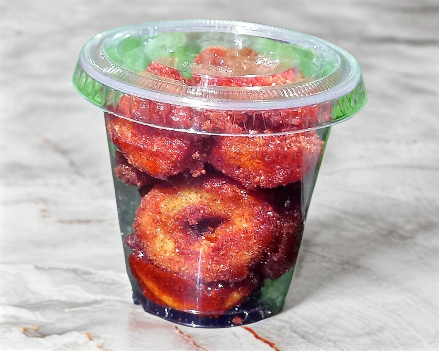 150 GR de gomitas enchiladas. (manguitos, lombricitas, panditas, frutitas y aros de durazno). VAN ENCHILADAS CON CHAMOY Y CHILE EN POLVO.