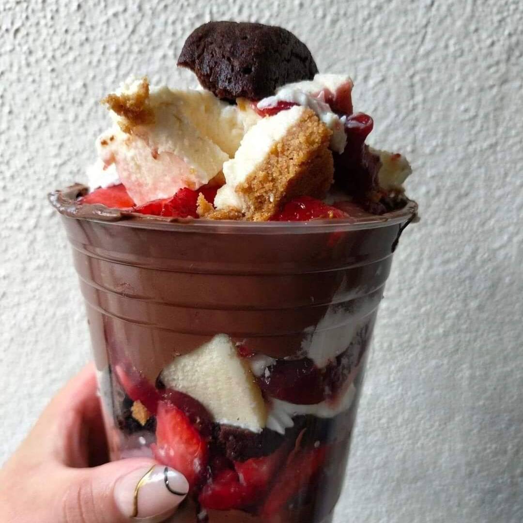 Vaso de 20 Oz (591 ml) con fresas naturales, nutella y chantilly. NO llevan crema.