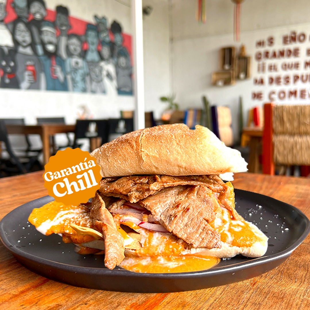 Bolillo crujiente relleno de chilaquiles de tu salsa favorita con pollo o arrachera, queso, crema y cebolla.