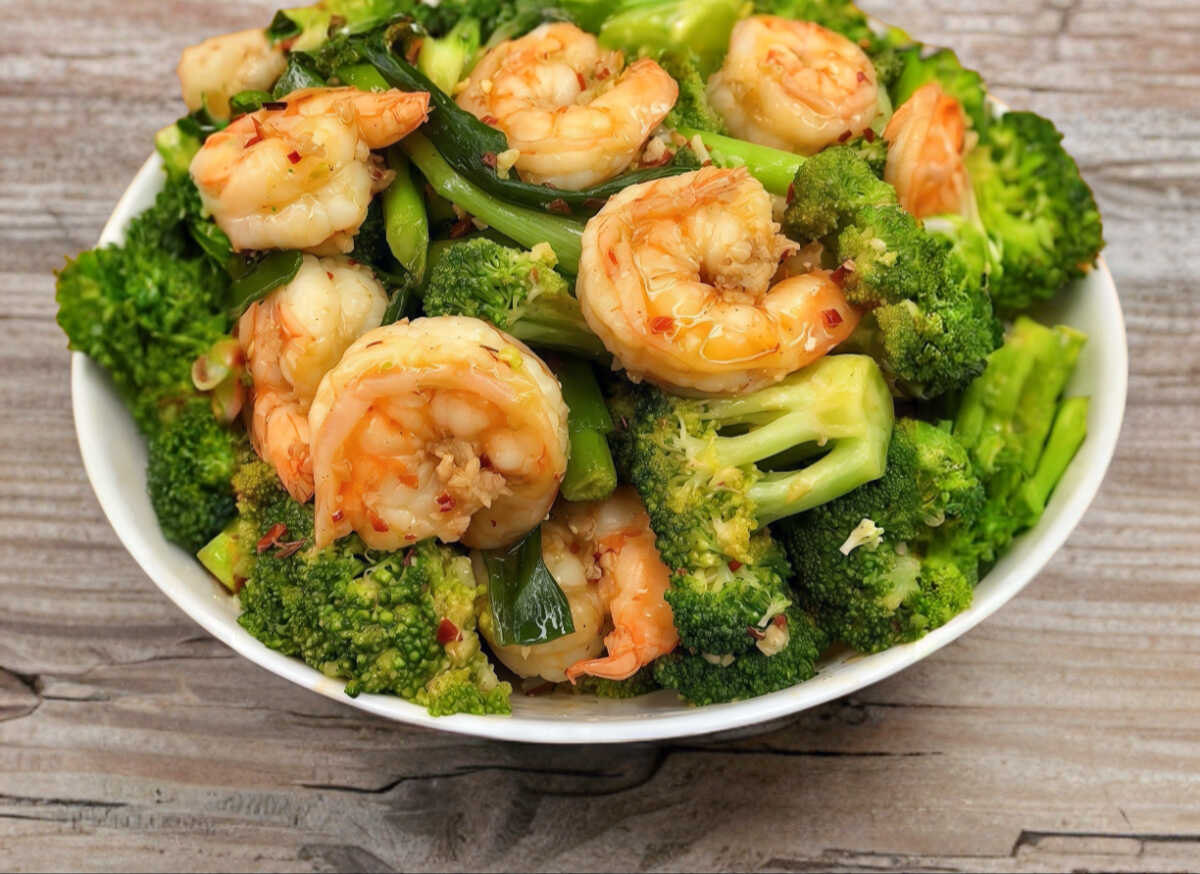 Camarones con brócoli en salsa de ostras grande (15 piezas camarón).