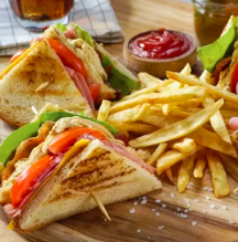 Porción personal: Sándwich de quesos, acompañado con papas a la francesa.