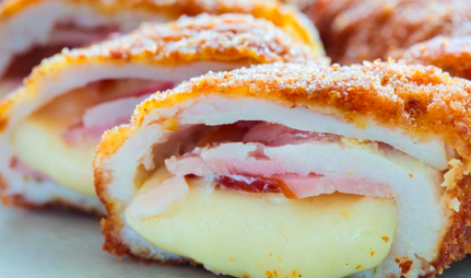 Pechuga asada, tocino y queso gouda.