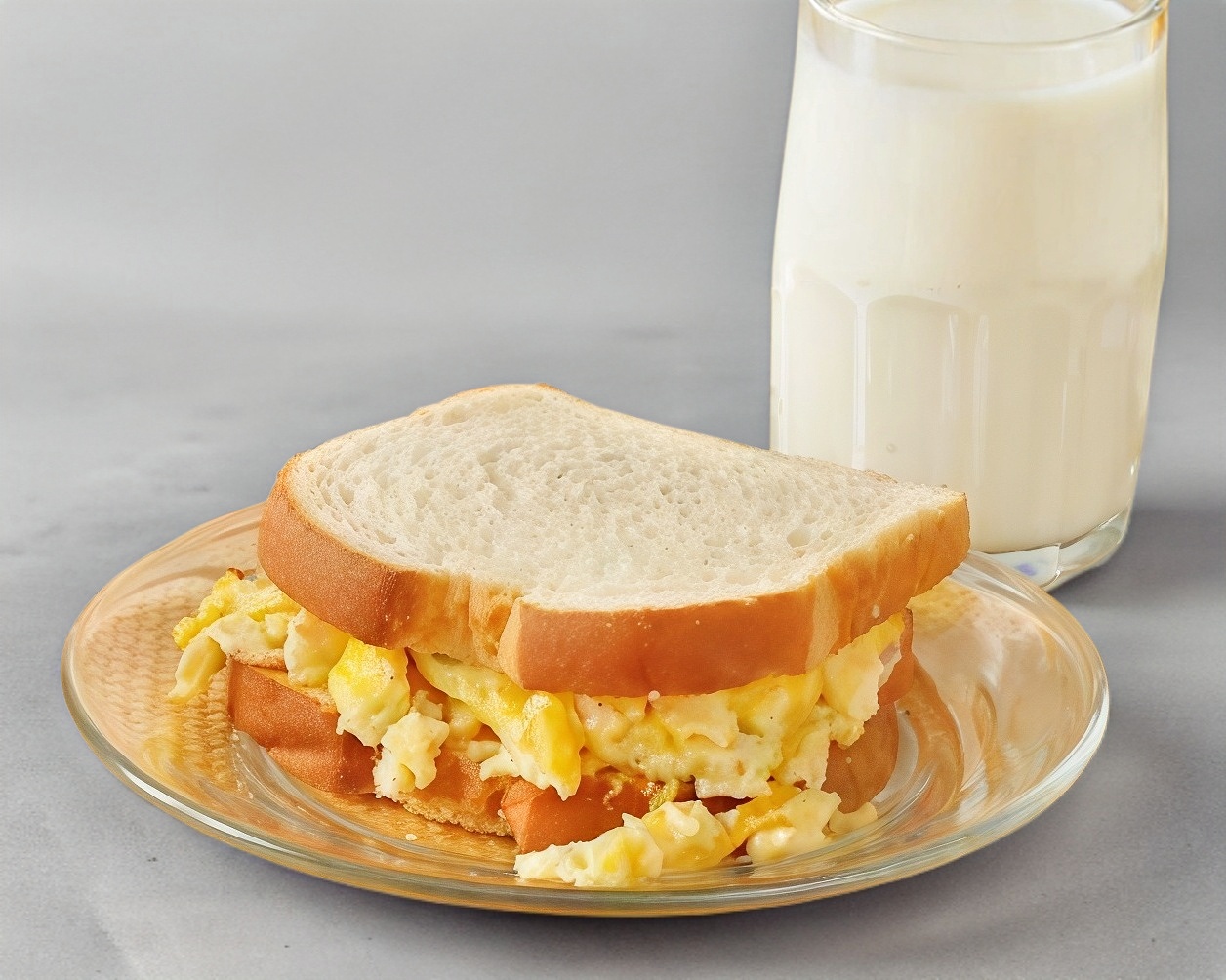 Sándwich 1 huevo, jitomate, cebolla y chile serrano con tocino. Incluye porción de papas a la francesa.