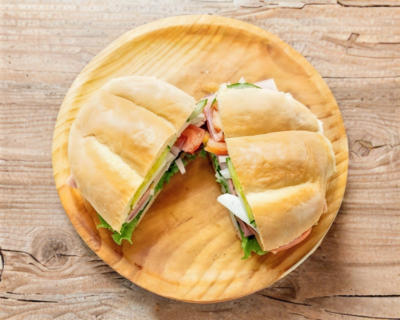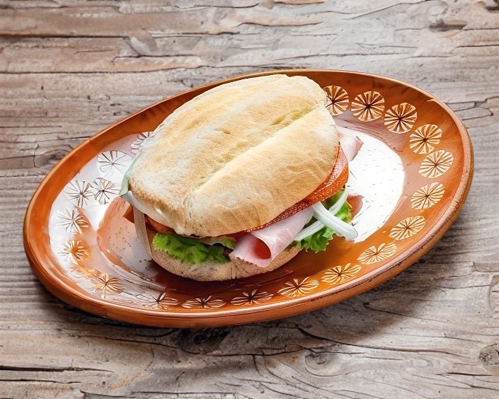 Jamón, lechuga, mayonesa, queso amarillo, aguacate, cebolla, chile.