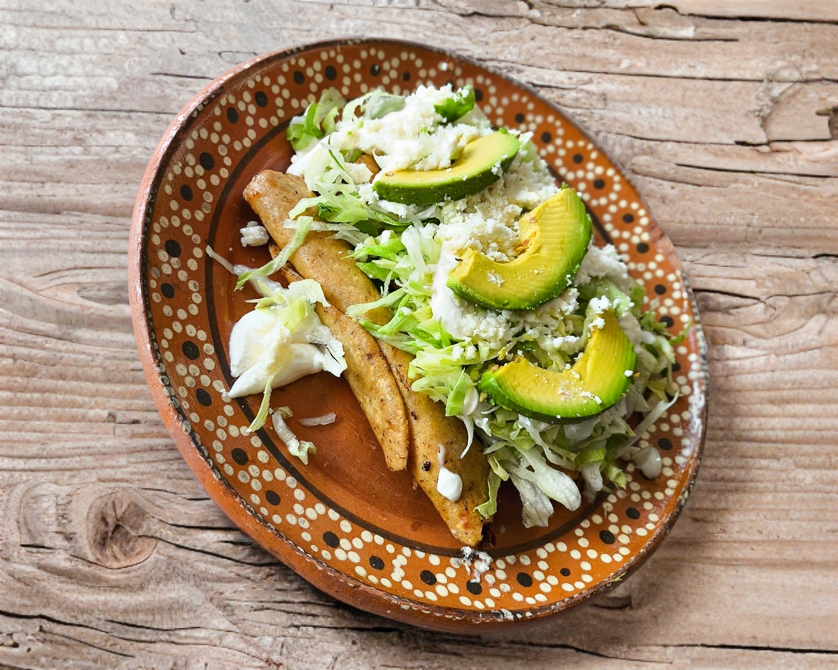 Acompañado con crema, queso y frijoles.