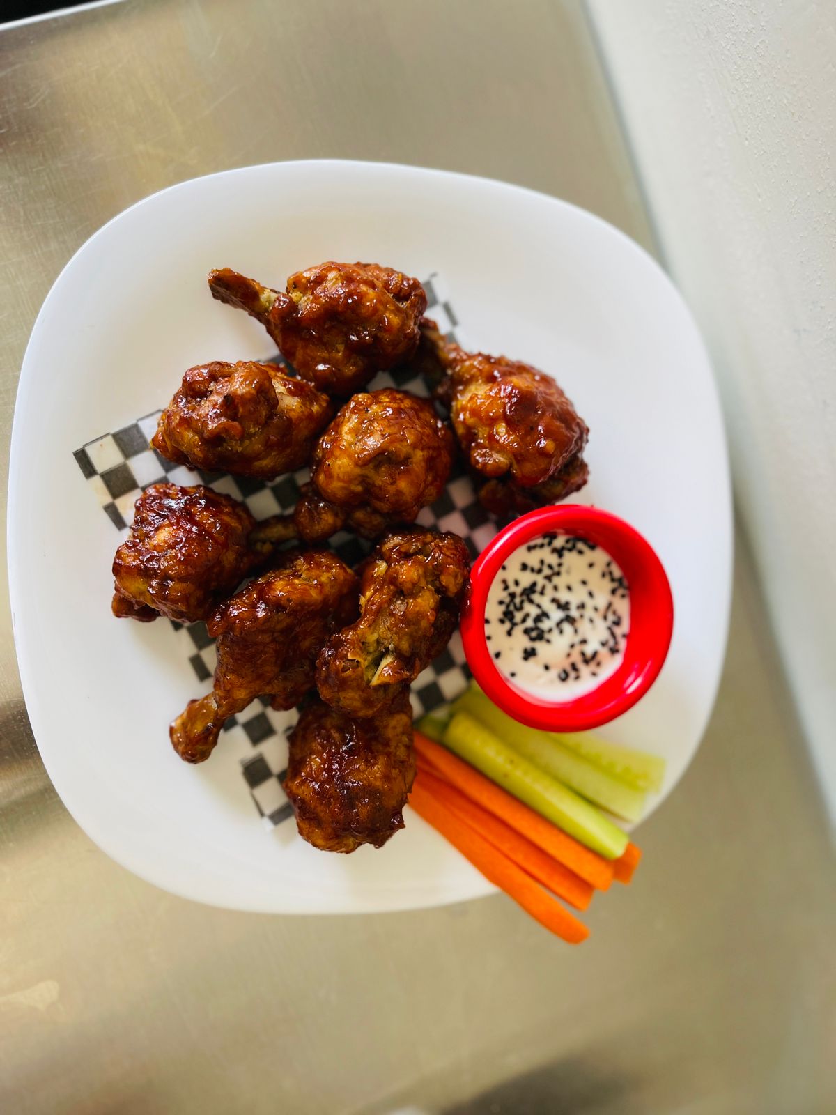 Orden 8 alitas. Acompañadas con Ranch, Pepino y Zanahoria