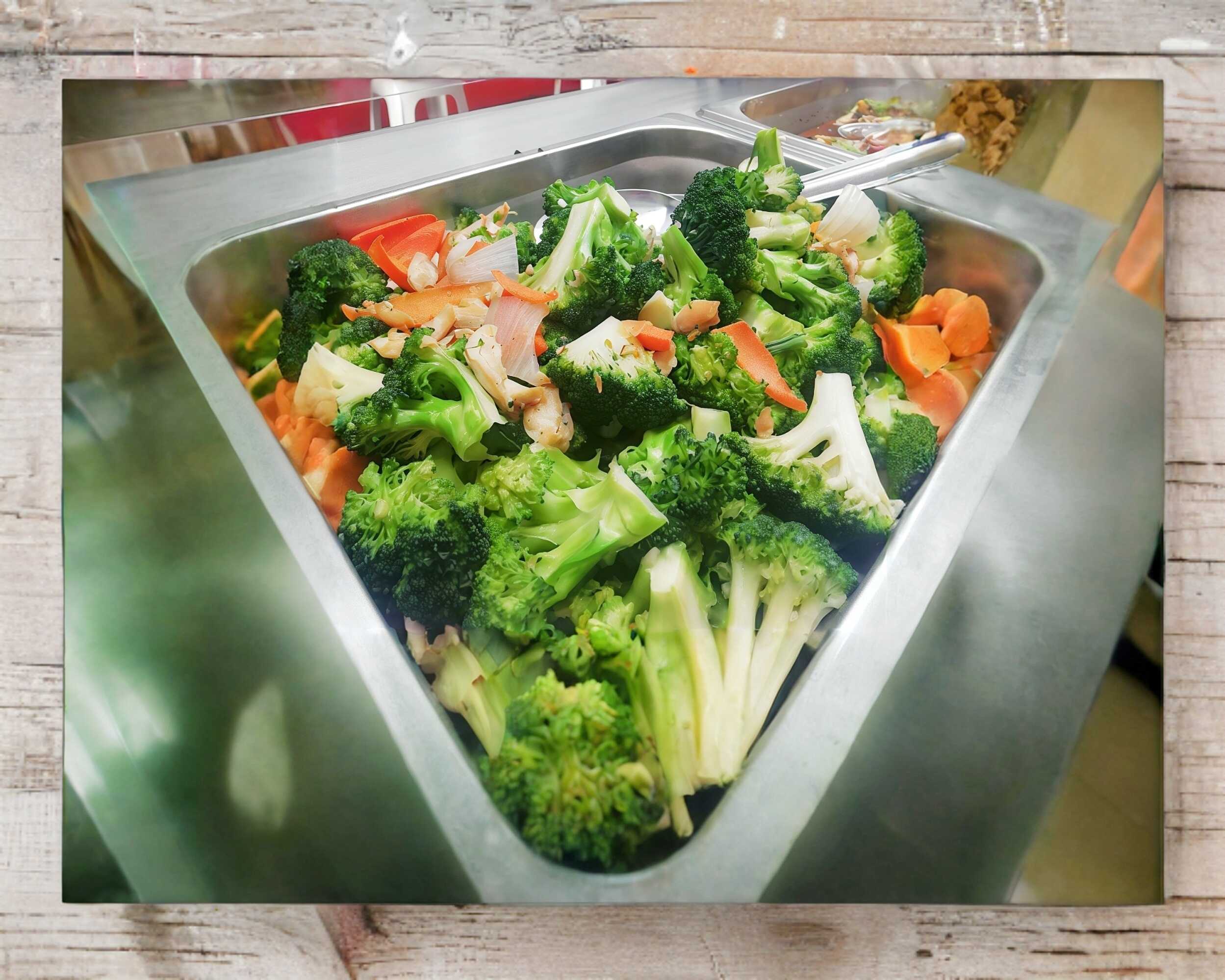 Brócoli, col, calabacita y zanahoria estiló cantones. Tamaño personal