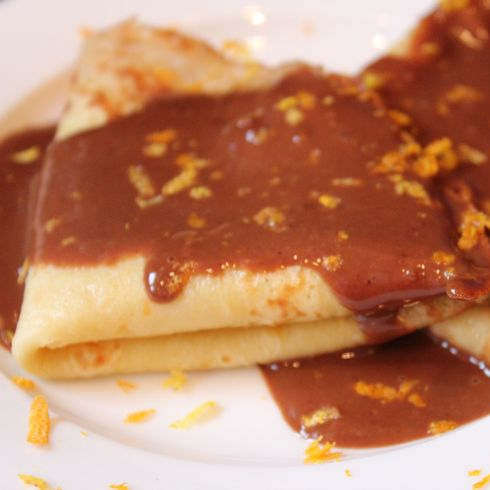 Deliciosa Crepa elaborada con masa casera, duraznos naturales y Nutella