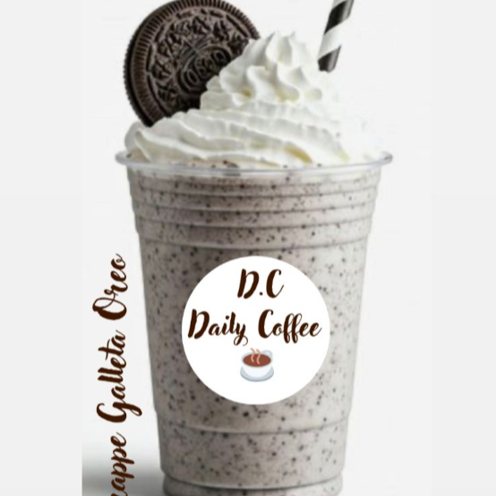 Frappe con leche, carga de cafe y chocolate en polvo, con crema batida y galleta de oreo