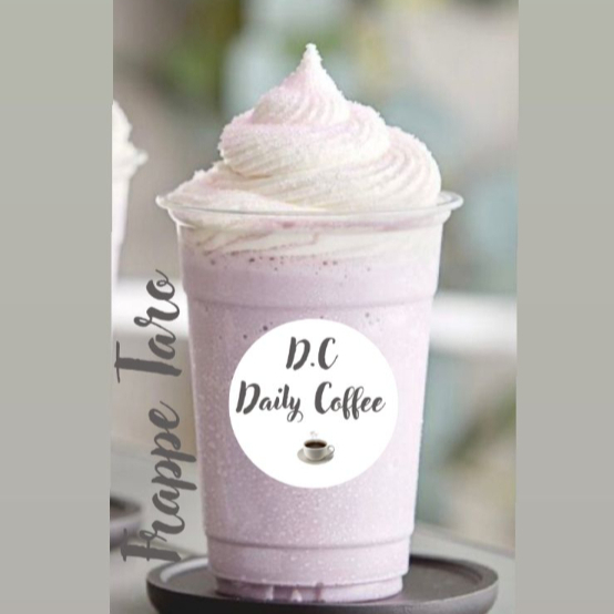 Frappe con leche con polvo de taro, crema batida y galleta de chocolate