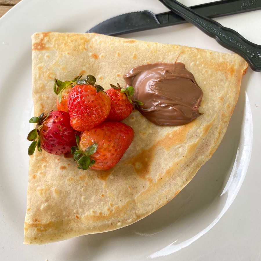 Deliciosa crepa elaborada con masa casera con fresas naturales y nutella