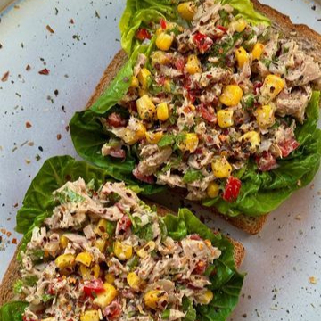 Sandwich elaborado con pan de 12 granos y semillas, con ensalada de atun y mayonesa, lechuga italinana, jitomate, cebolla, pepino, acompañado con un aderezo de chipotle
