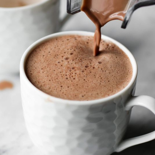 Cafe expreso con chocolate oscuro en polvo y leche cremada