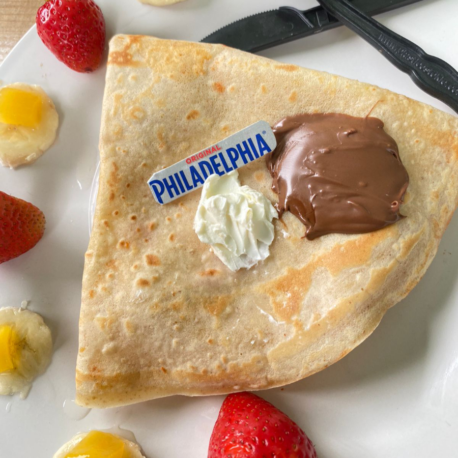Deliciosa crepa elaborada con masa casera con Philadelphia y NUTELLA