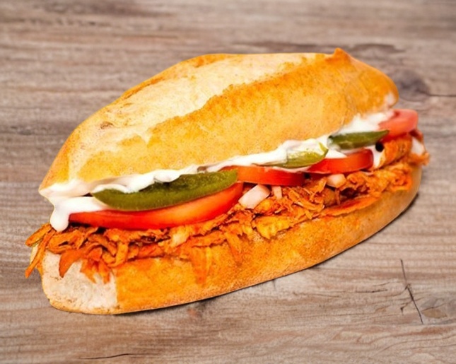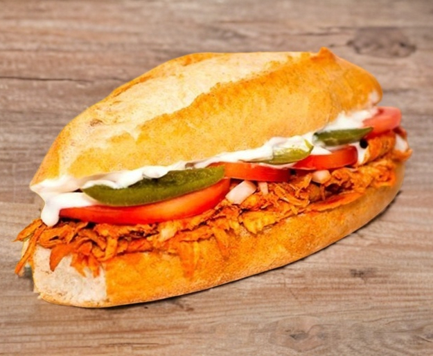 Jamón y Salchicha de Pavo Queso Asadero, jitomate, lechuga, verdura en vinagre crema y aderezo