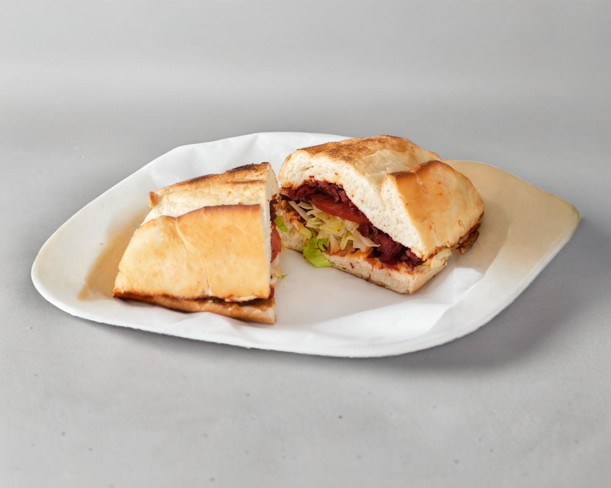 Plato personal: Milanesa(cerdo), Salchicha, Jamón, Q. Puerco, Q. Amarillo, Q. Oaxaca. Acompañado de Lechuga, Jitomate, Aguacate, Jalapeño, Mayonesa, un poco de salsa roja y bolillo aparte.