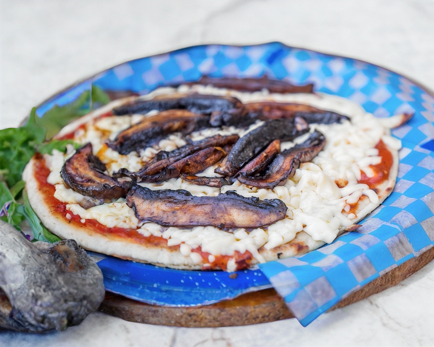 Totopos, queso cheddar, portobello a la plancha, pico de gallo y jalapeños.