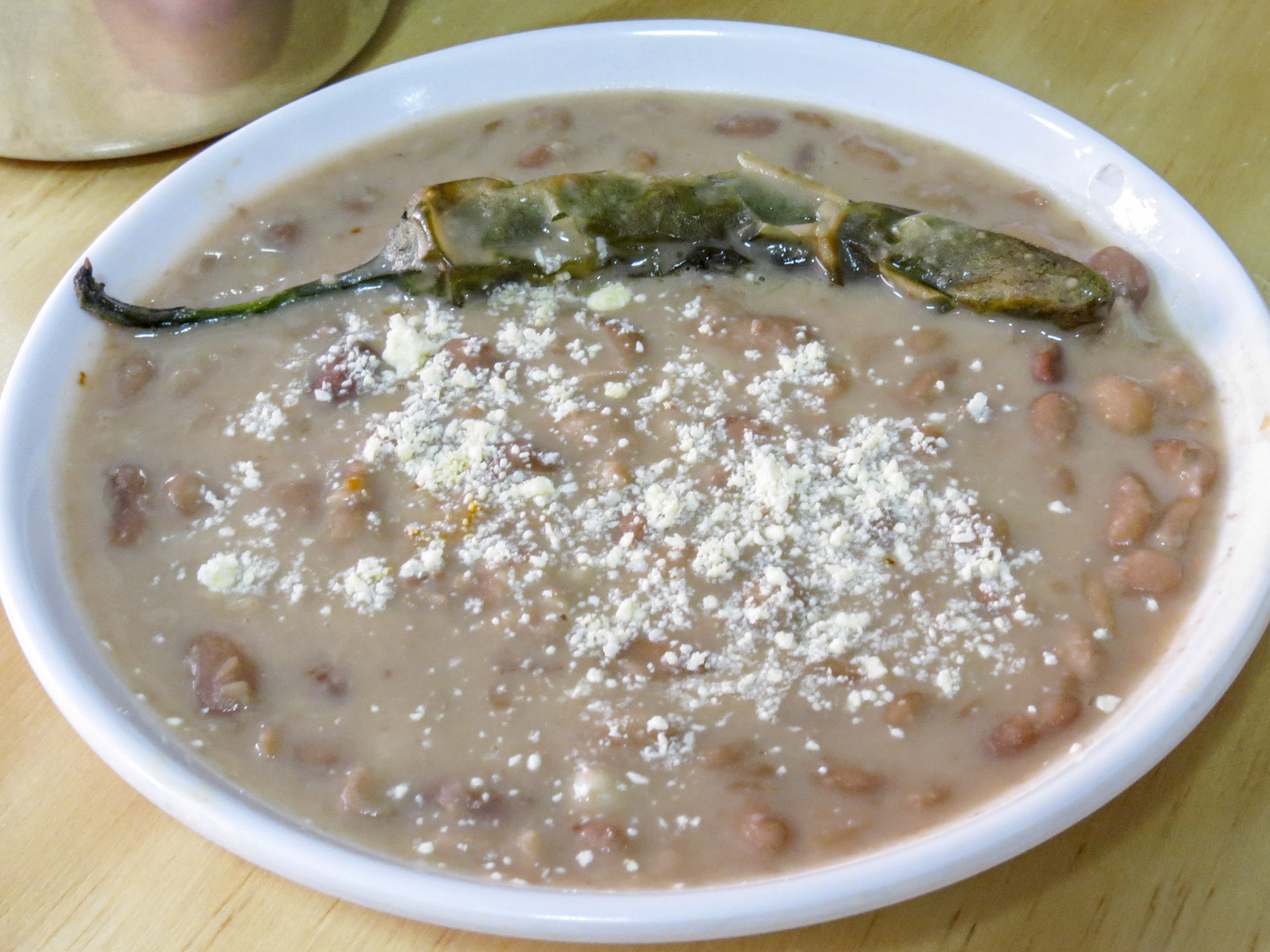 FRIJOLES REFRITOS*1 + MEDIA ORDEN DE 3 ENCHILADAS*1 + BISTEC ASADO*1 + RAJAS*1 + SOPE*1