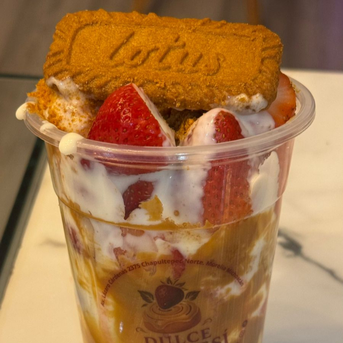 Glaseado, crema biscoff y galleta lotus.
