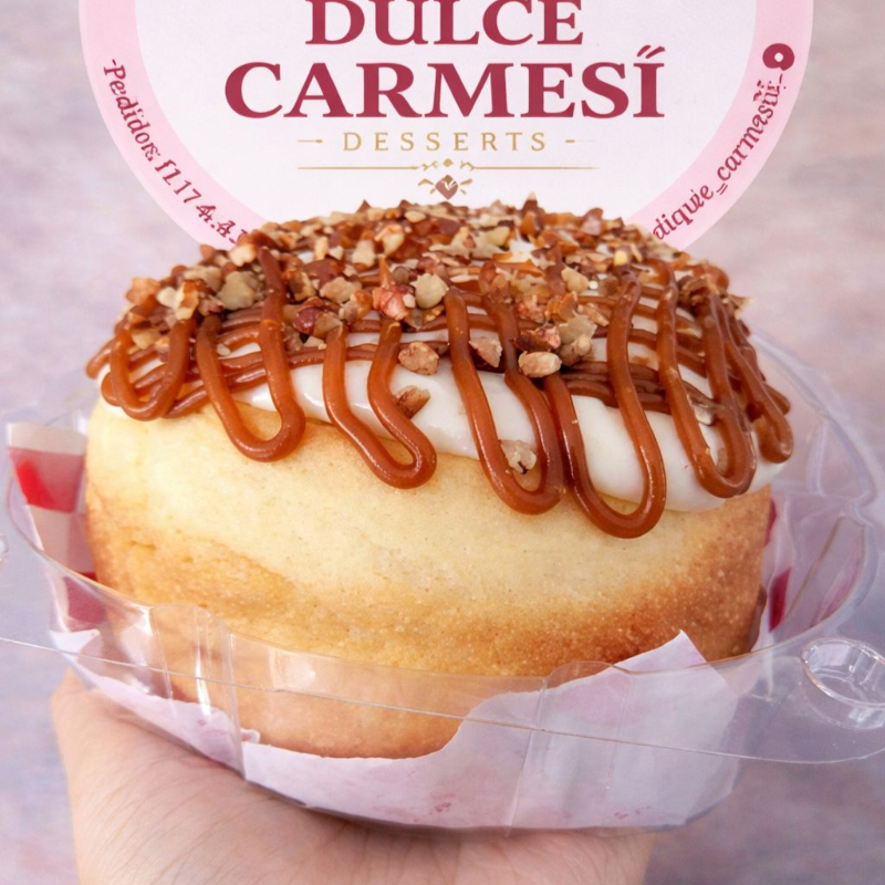 Glaseado, cajeta y alendra o nuez.