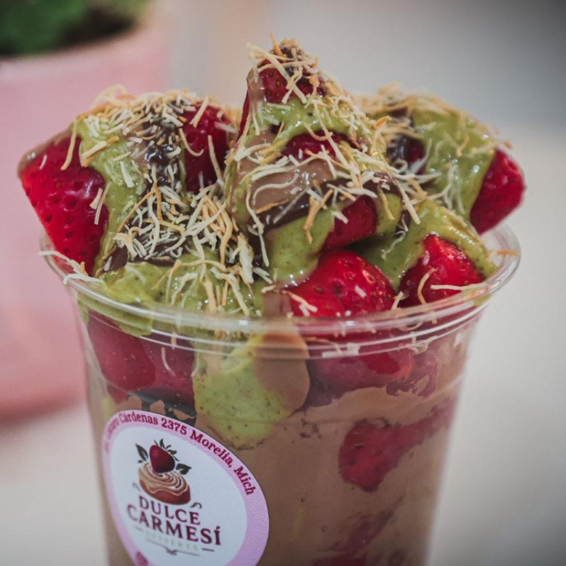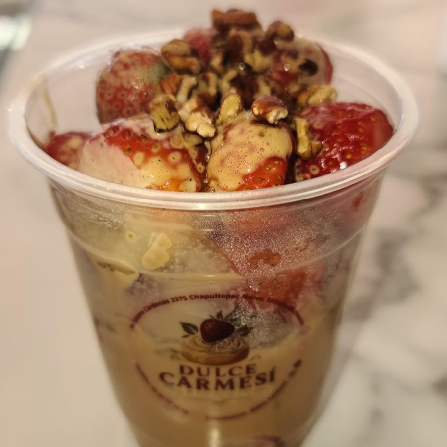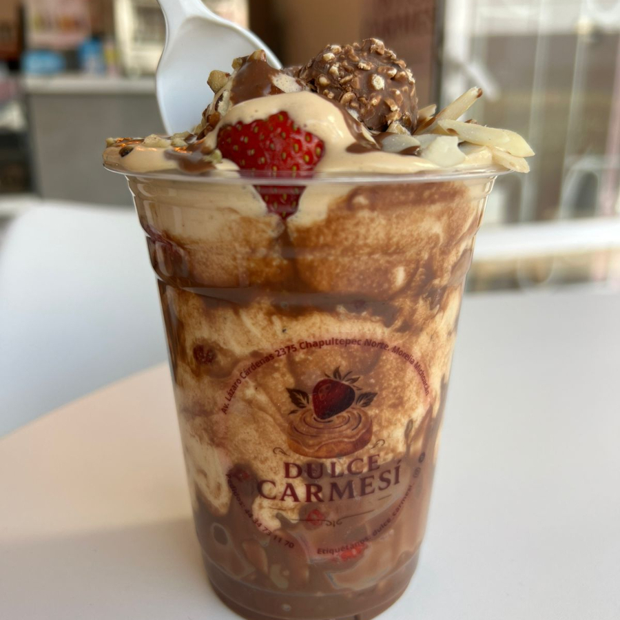 crema de su eleccion, un topping y una cobertura.