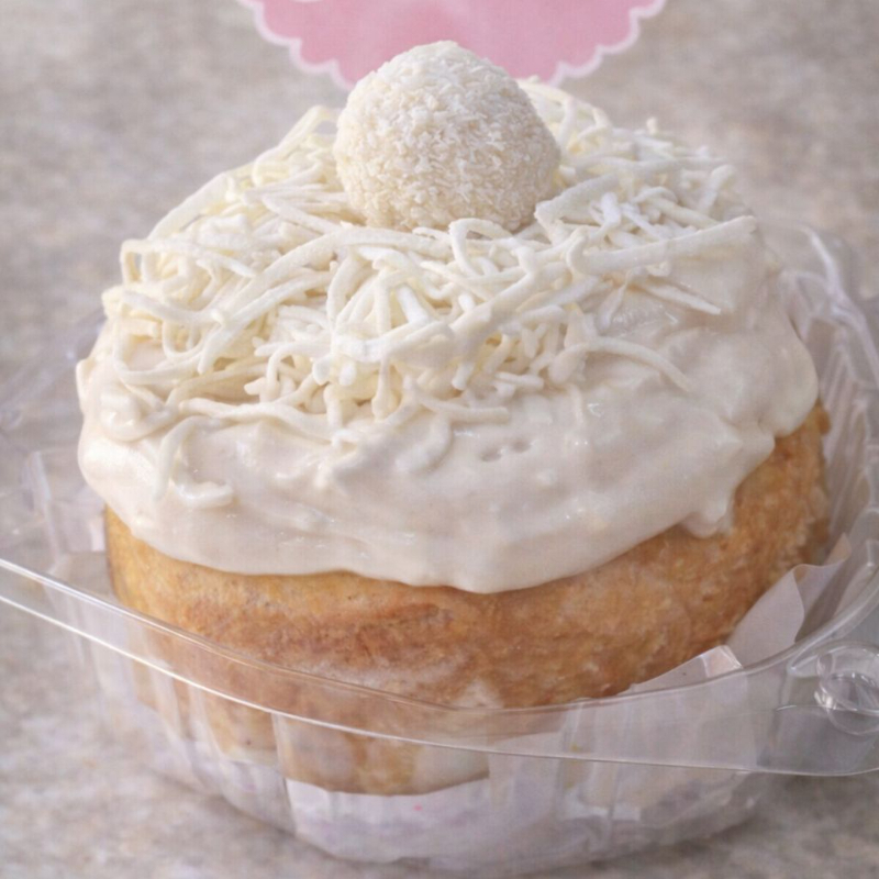 Glaseado,coco rallado y chocolate fraffaello.