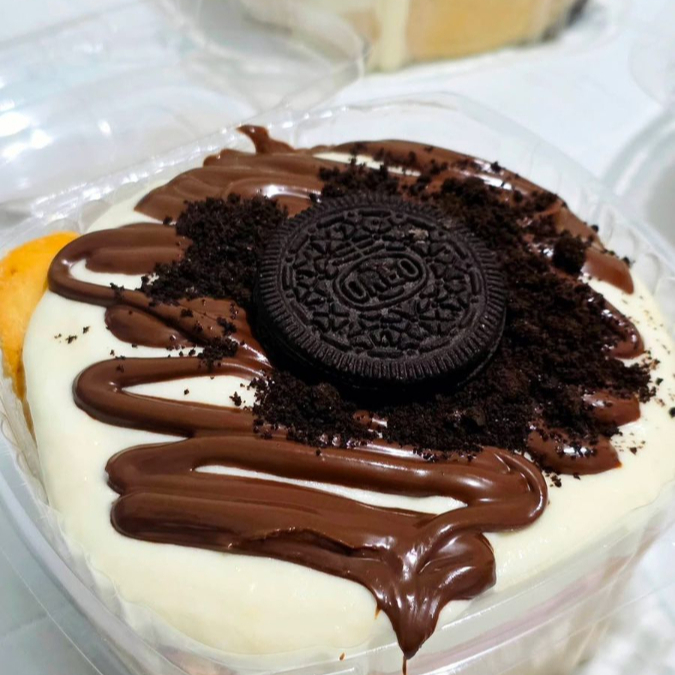 Glaseado, chocolate y trozos de galleta oreo.
