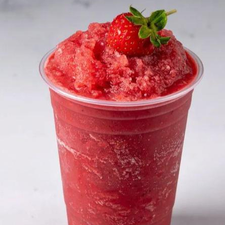 Malteada a base de fresa natural. Y decorada con crema batida y jarabe de fresa.