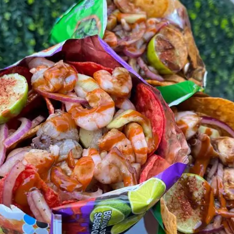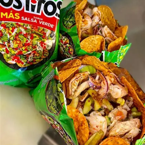 Tostitos con Aguachile (indica el sabor del aguachile en notas), cueritos, cacahuates, jitomate, repollo