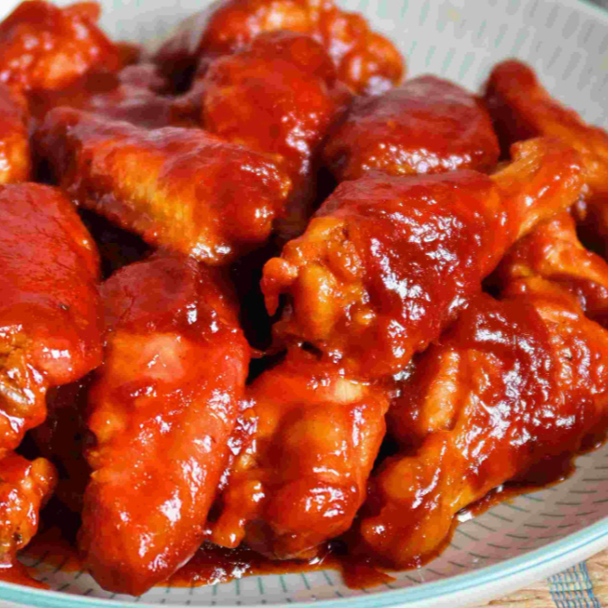 330gr de alitas de pollo bañadas en salsa bbq acompañadas con verduras y aderezo