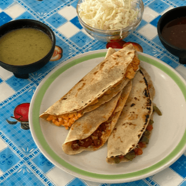 Quesadillas de masa de maiz con queso, guiso y salsa del día