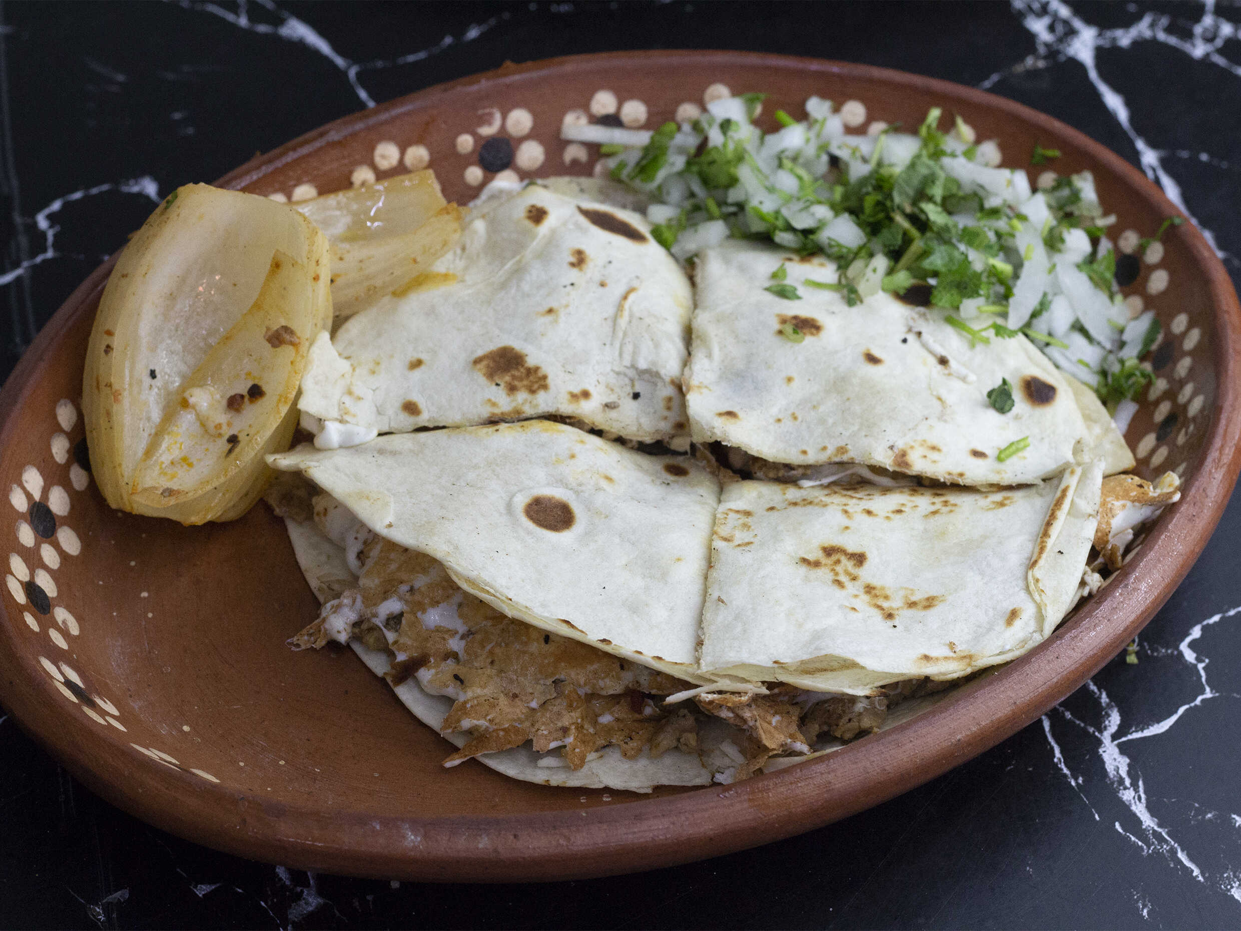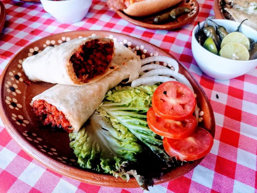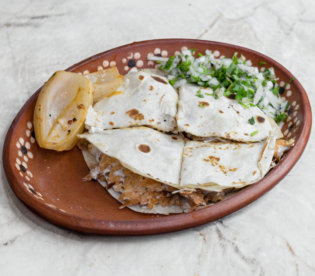 Doble Tortilla de Harina, Jamón, Queso amarillo, Queso Blanco, Lechuga, Jitomate, Cebolla y Crema.