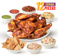 12 piezas de pollo y 4 complementos. Incluye: salsas, tortillas y totopos.
