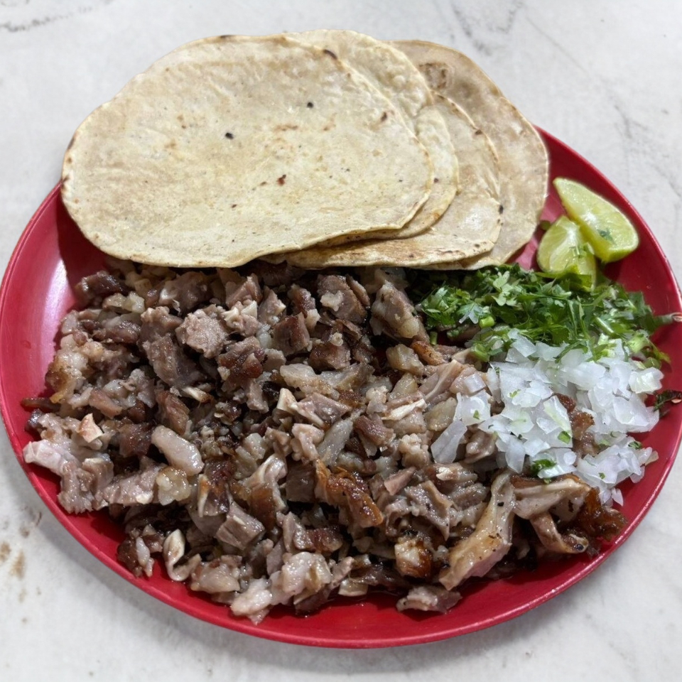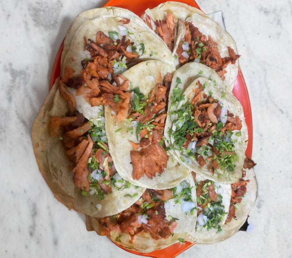 Chuleta, pastor, chorizo, cebolla, poblano, piña y queso.