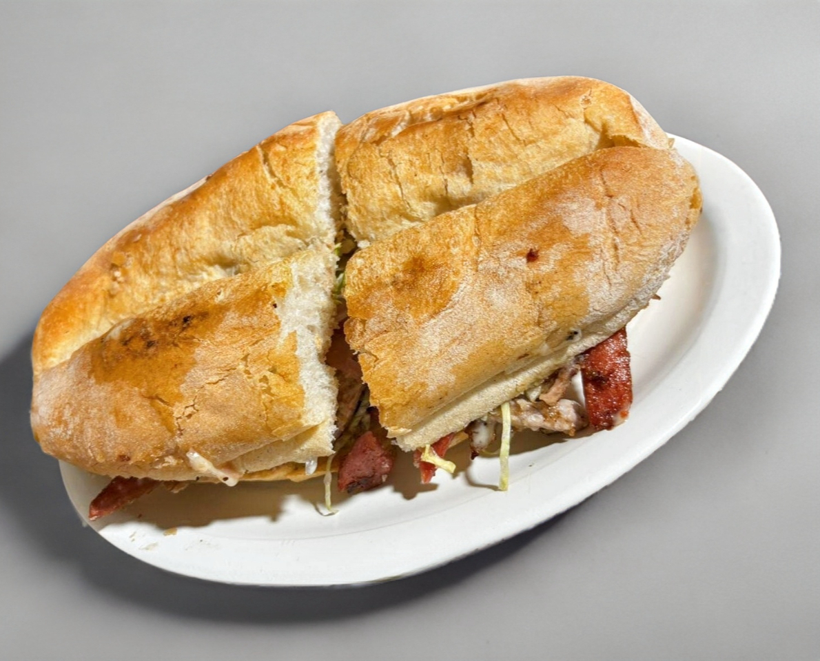 Doble carne, salchicha, jamón, queso amarillo y pastor.