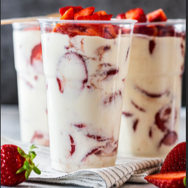 Exquisitas fresas con crema, con una base gélida de fresa fresca, trozos grandes y piezas completas de fresa de temporada.
