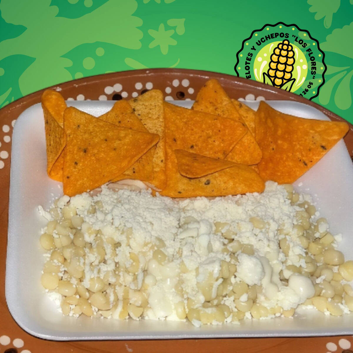 Doritos o tostitos preparados con elote