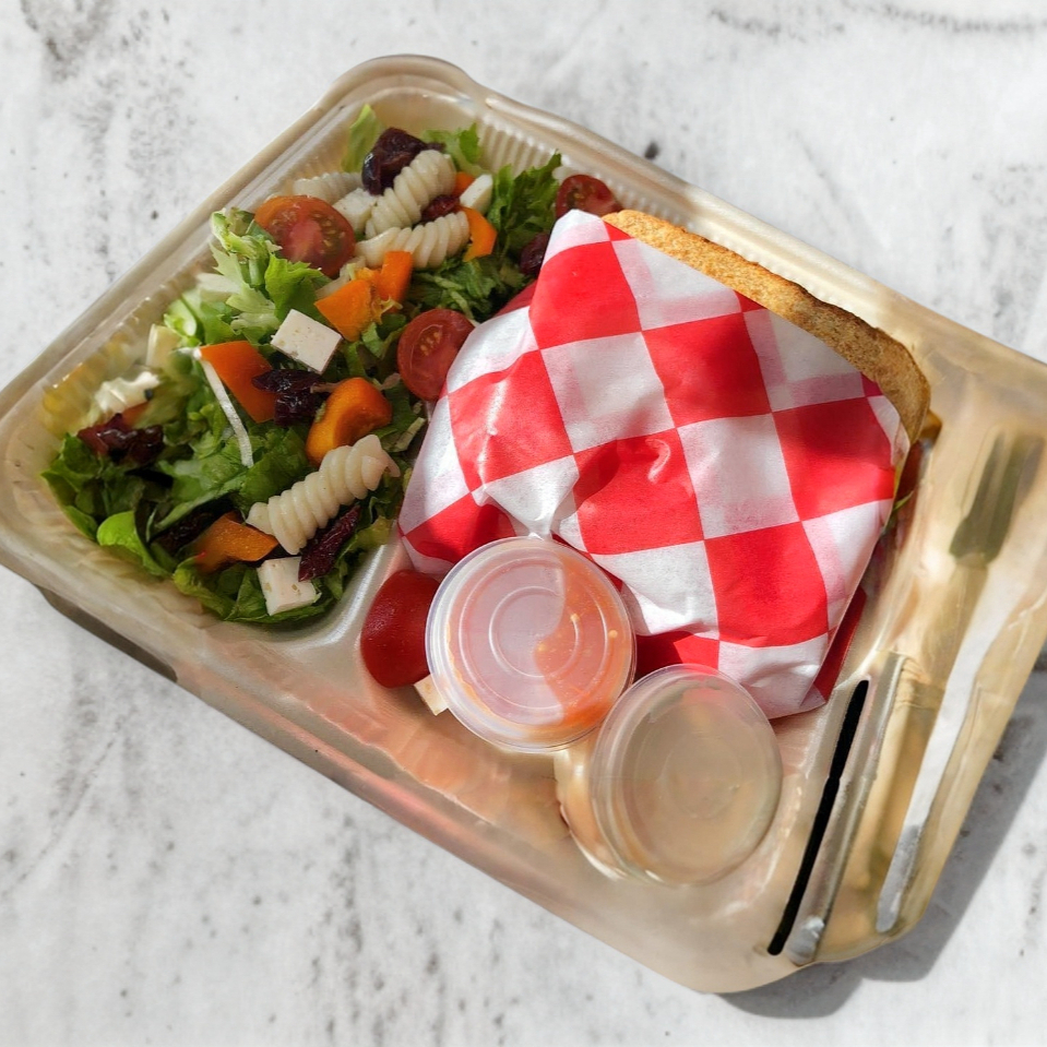 Sandwich de tu elección + jugo de tu elección + ensalada cherry + salsa + aderezo