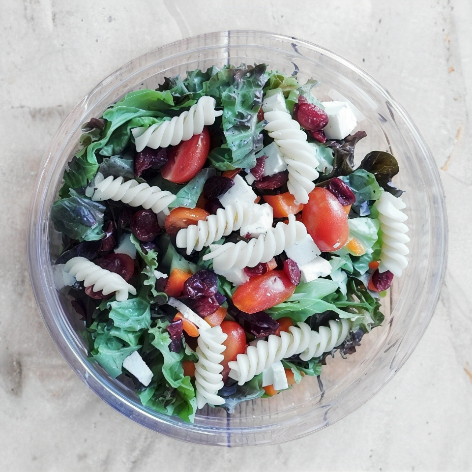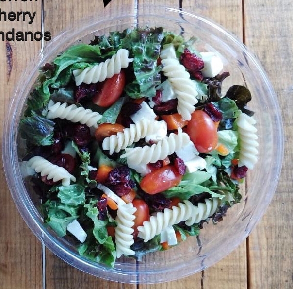 Lechuga, pasta, morrón, panela, arándanos,jitomate cherry + proteina