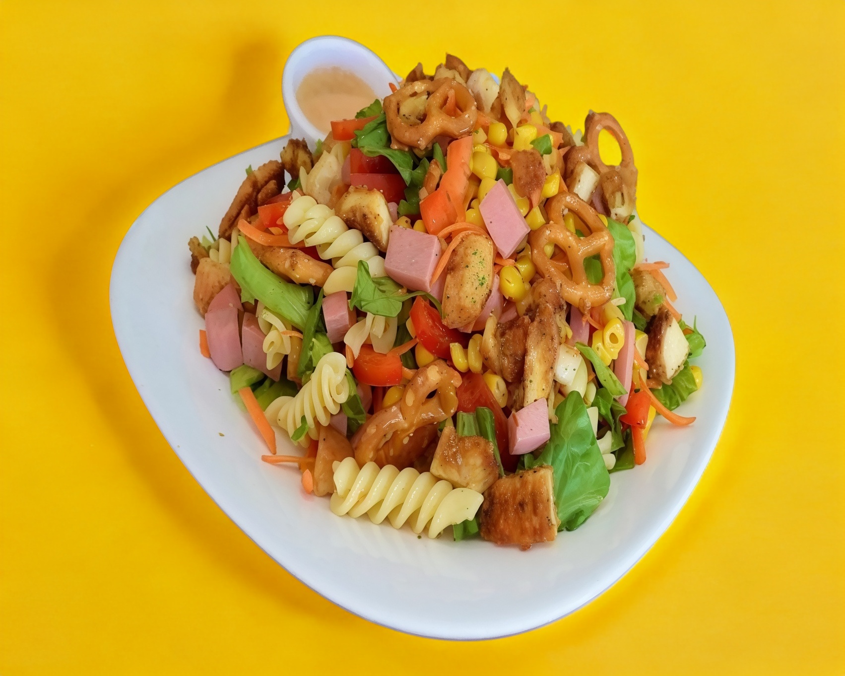 5 Verduras a elegir, 2 toppings, 2 complementos, 1 proteína y 2 aderezos. Para una persona.