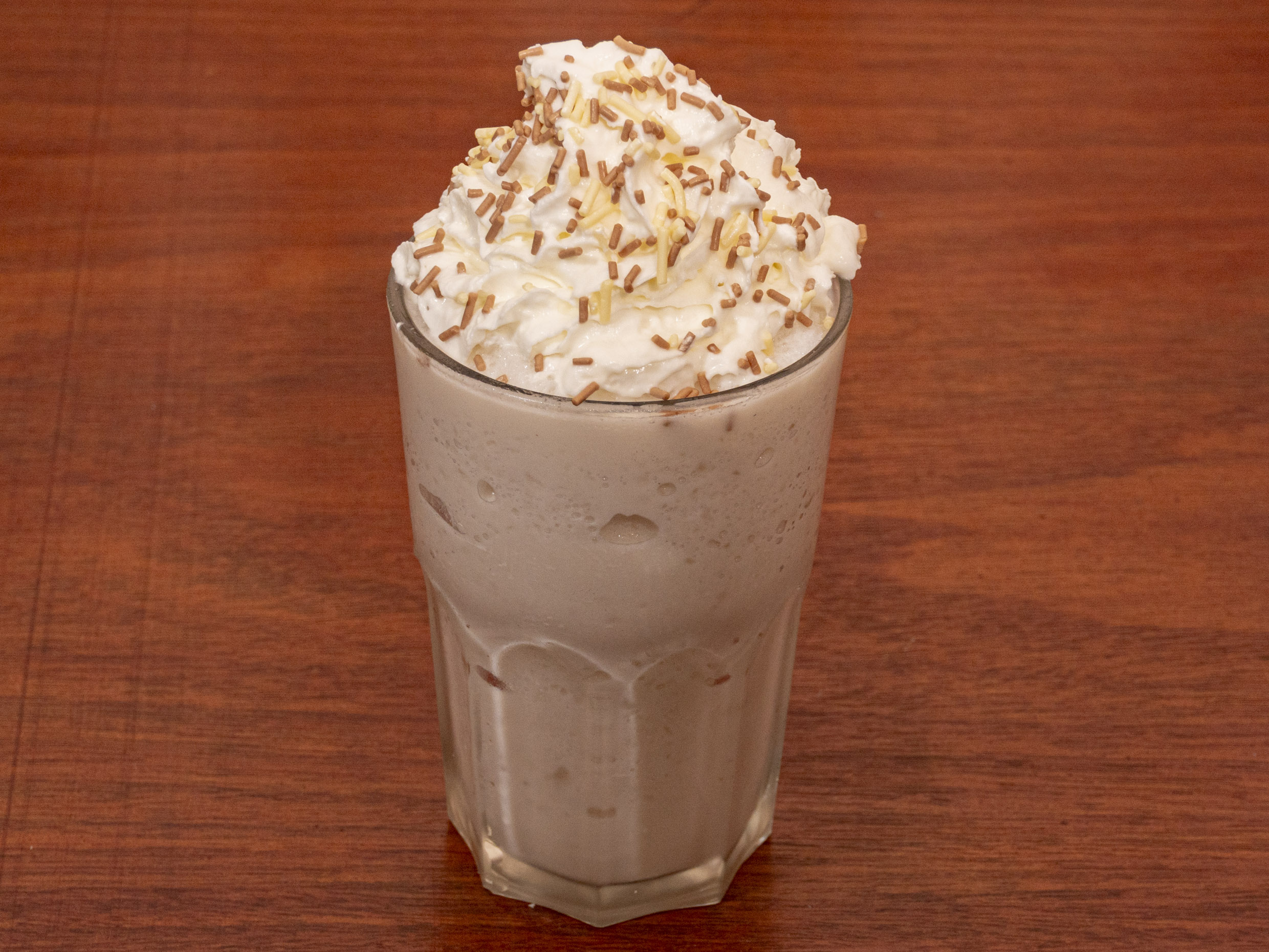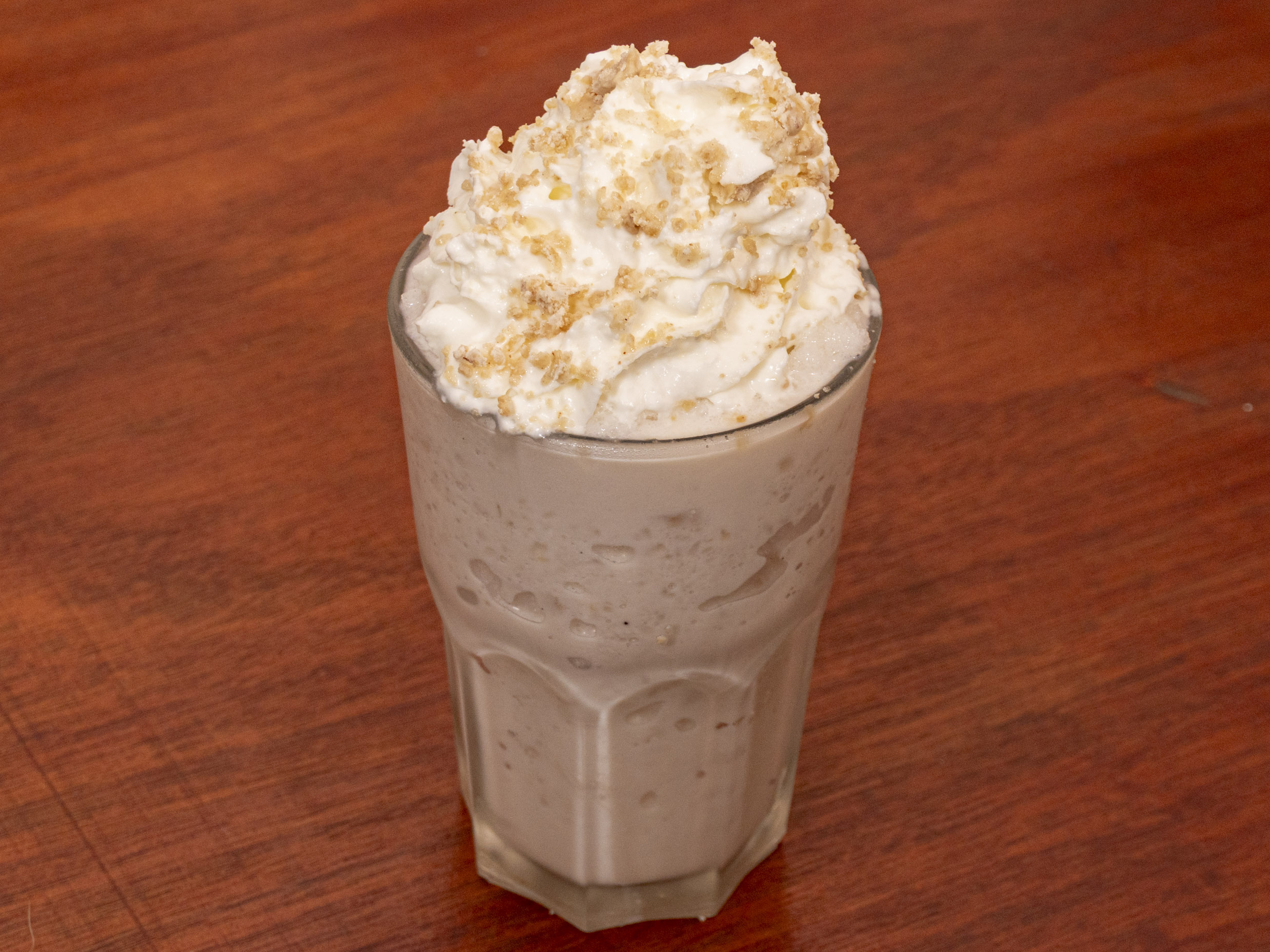 Frappé sabor a Mazapán y crema batida. Bebida de 12oz