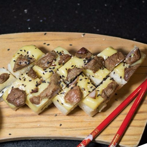 XD: Arrachera, philadelphia y manchego. XF: Aderezo tampico y pimiento triturado.