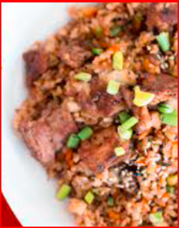 Arroz a la plancha con soya e ingredientes a su preferencia.
