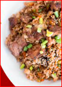 3 ingredientes. Arroz a la plancha con soya e ingredientes a su preferencia.
