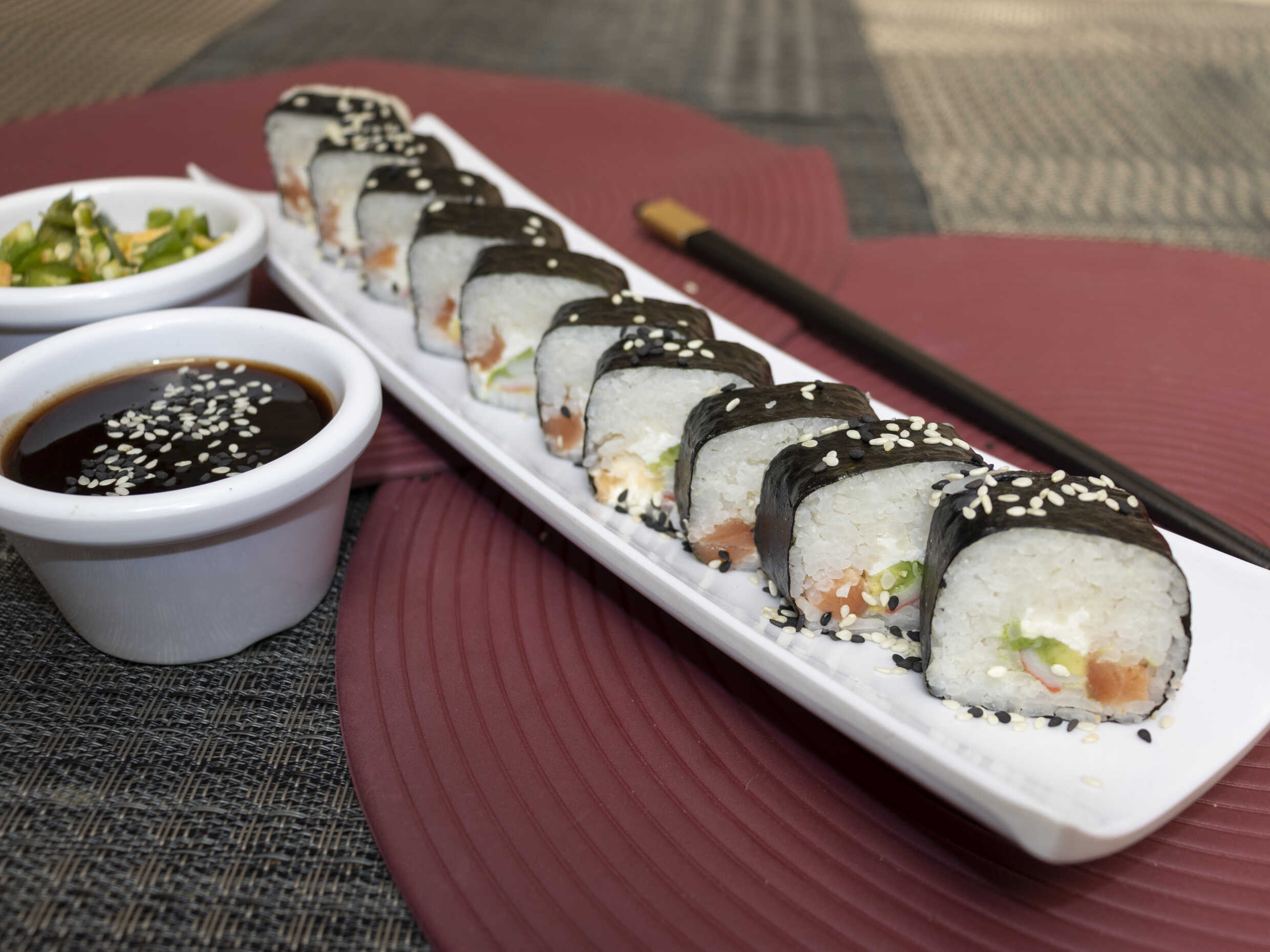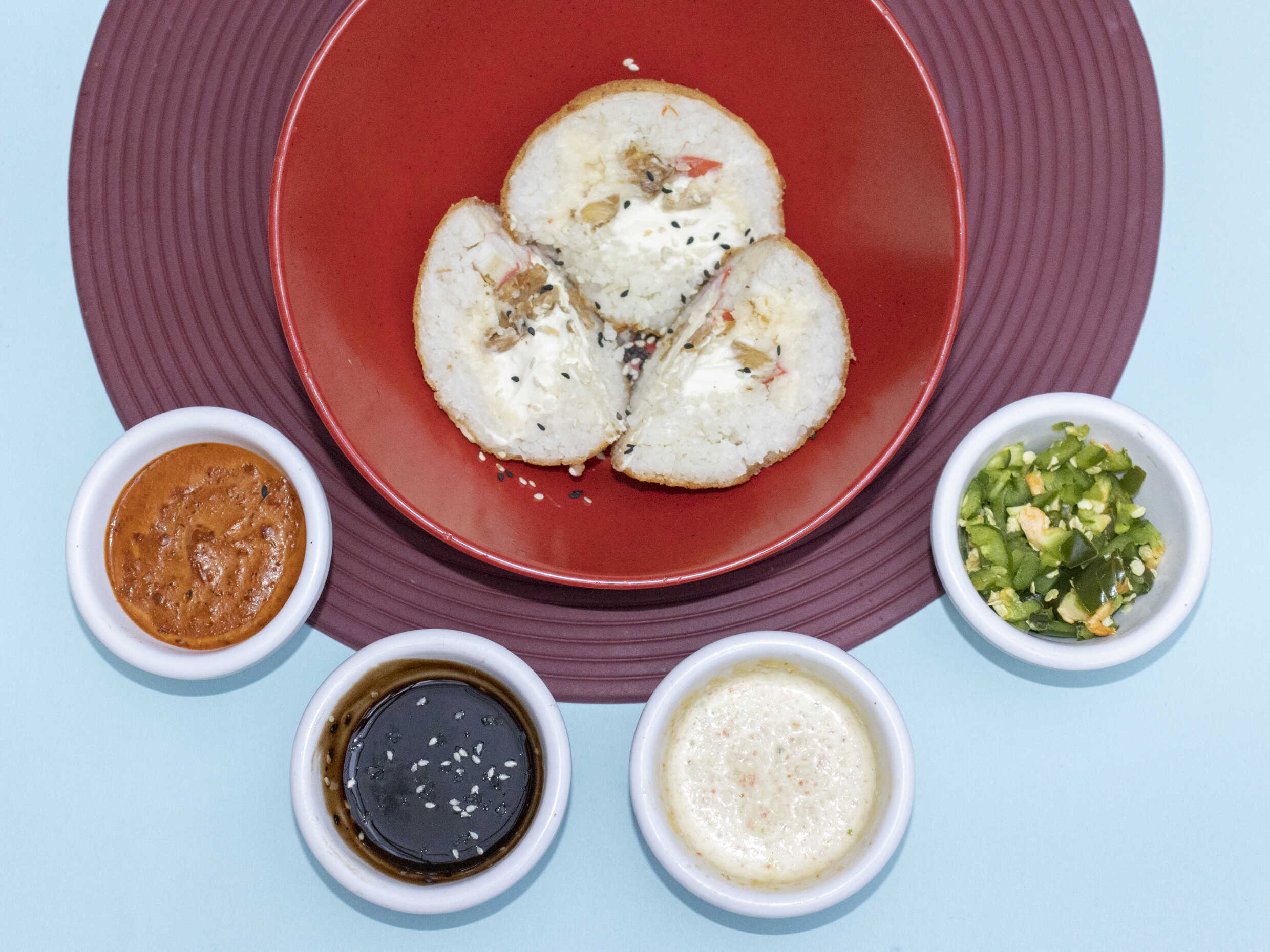 XD: Camarón, philadelphia y manchego. XF: Ajonjolí, aderezo tampico y salsa kushiague.