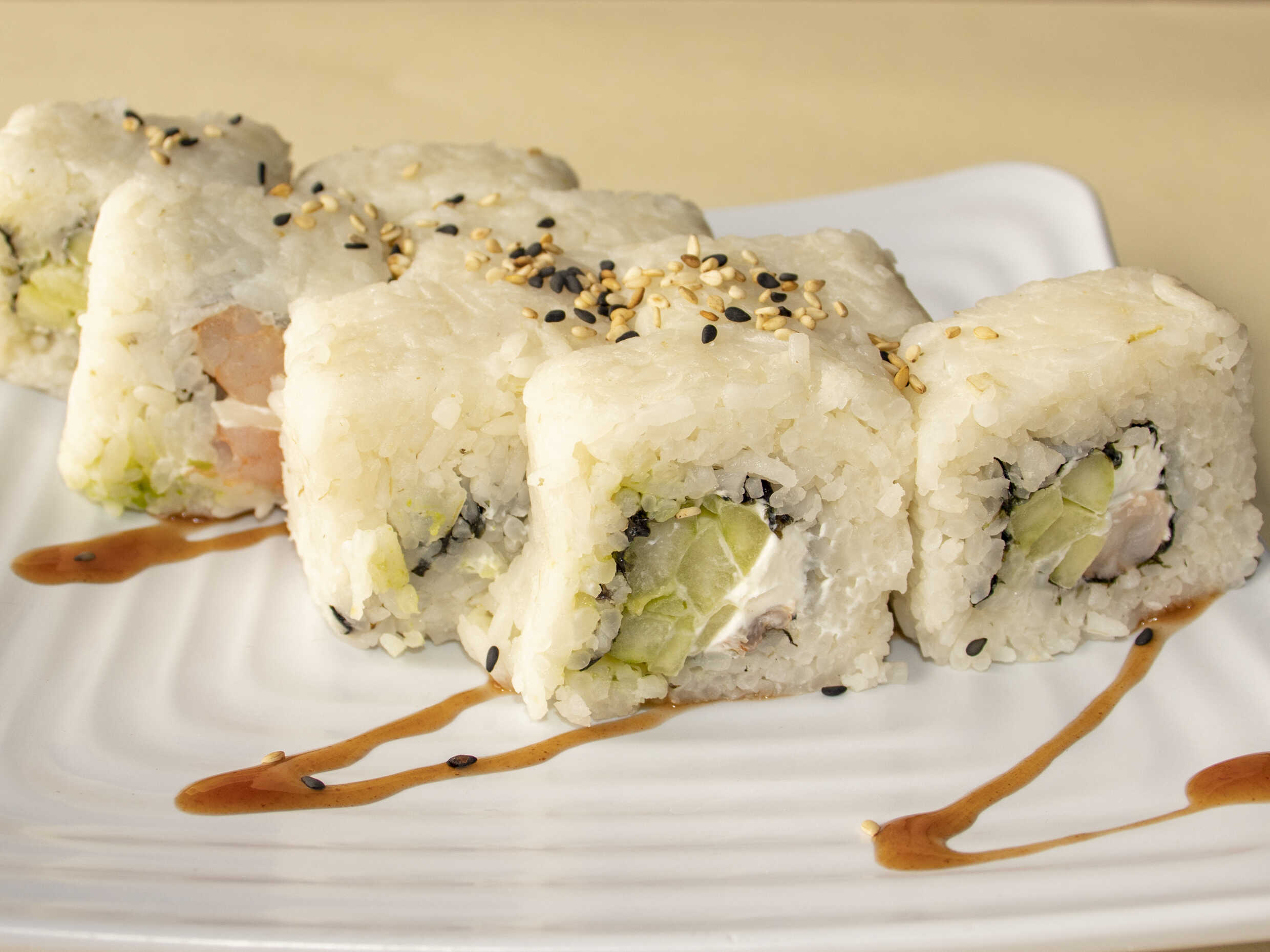 XD: Camarón, philadelphia, pepino y aguacate. XF: Aderezo tampico, salsa kushiague y ajonjolí.