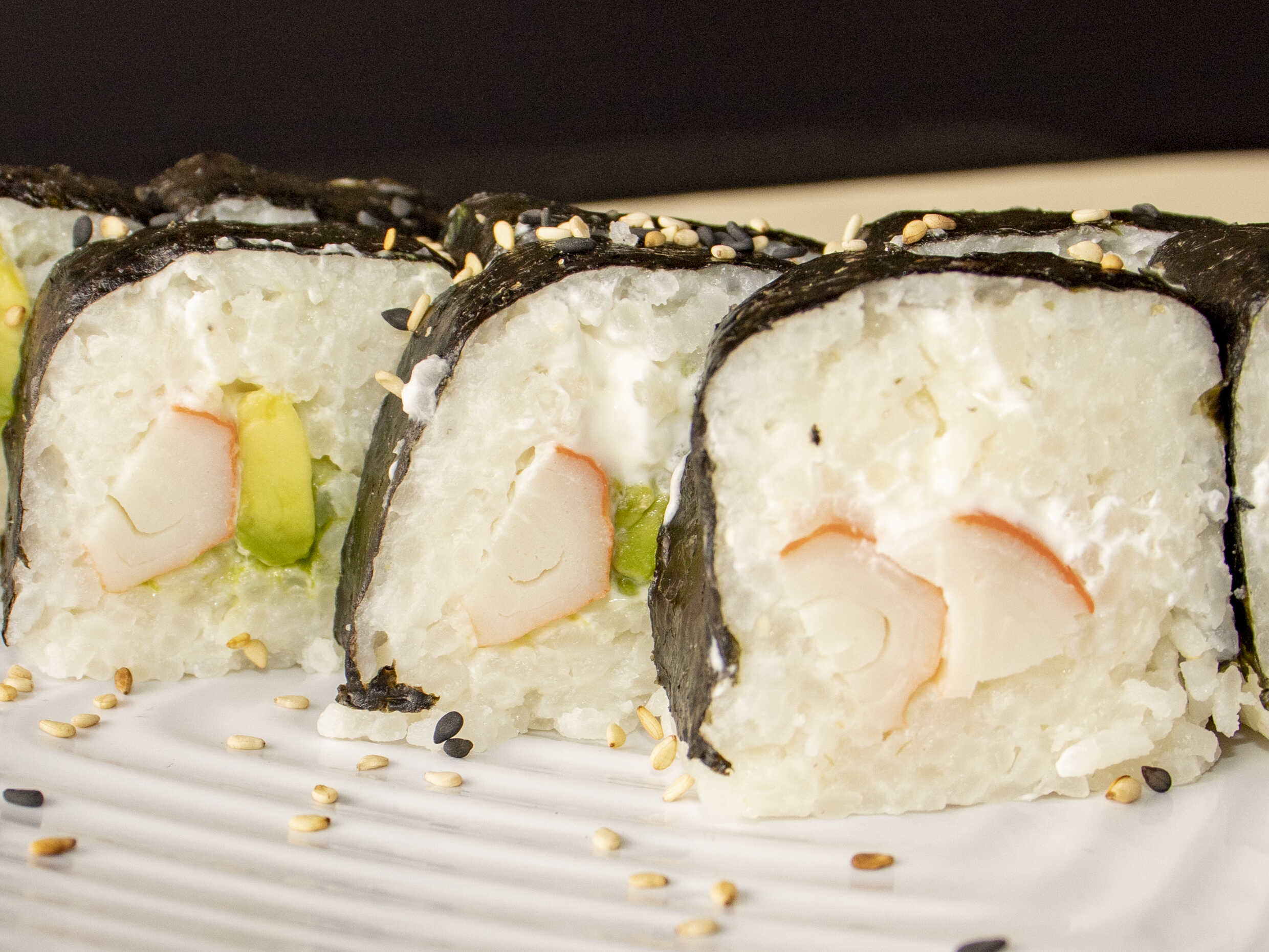 D: Salmón, surimi, aguacate y philadelphia F: alga y ajonjolí.