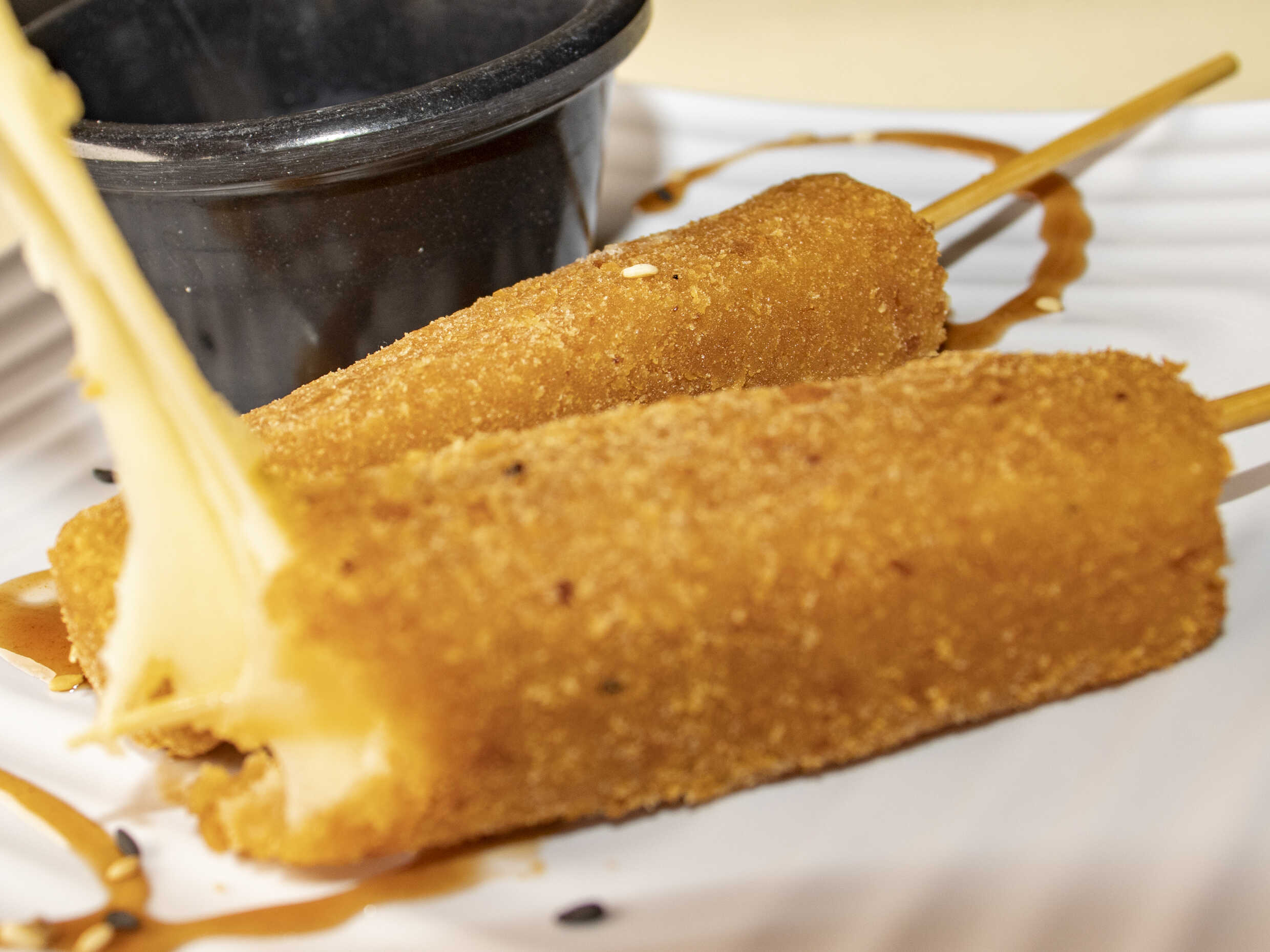 D: Camarón, aguacate y philadelphia. F: Queso fundido, salsa kushiage y ajonjolí.